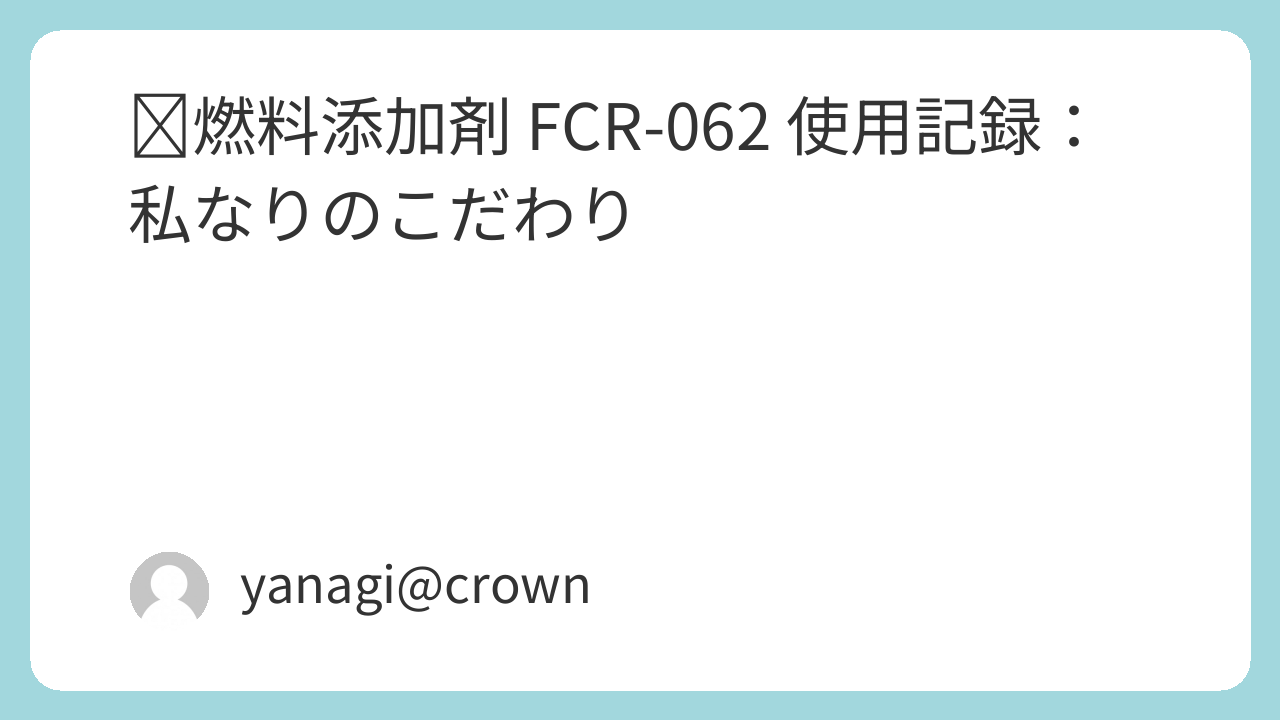 今回は旅行前の給油タイミングに合わせて、FCR-062を約100ml添加。
